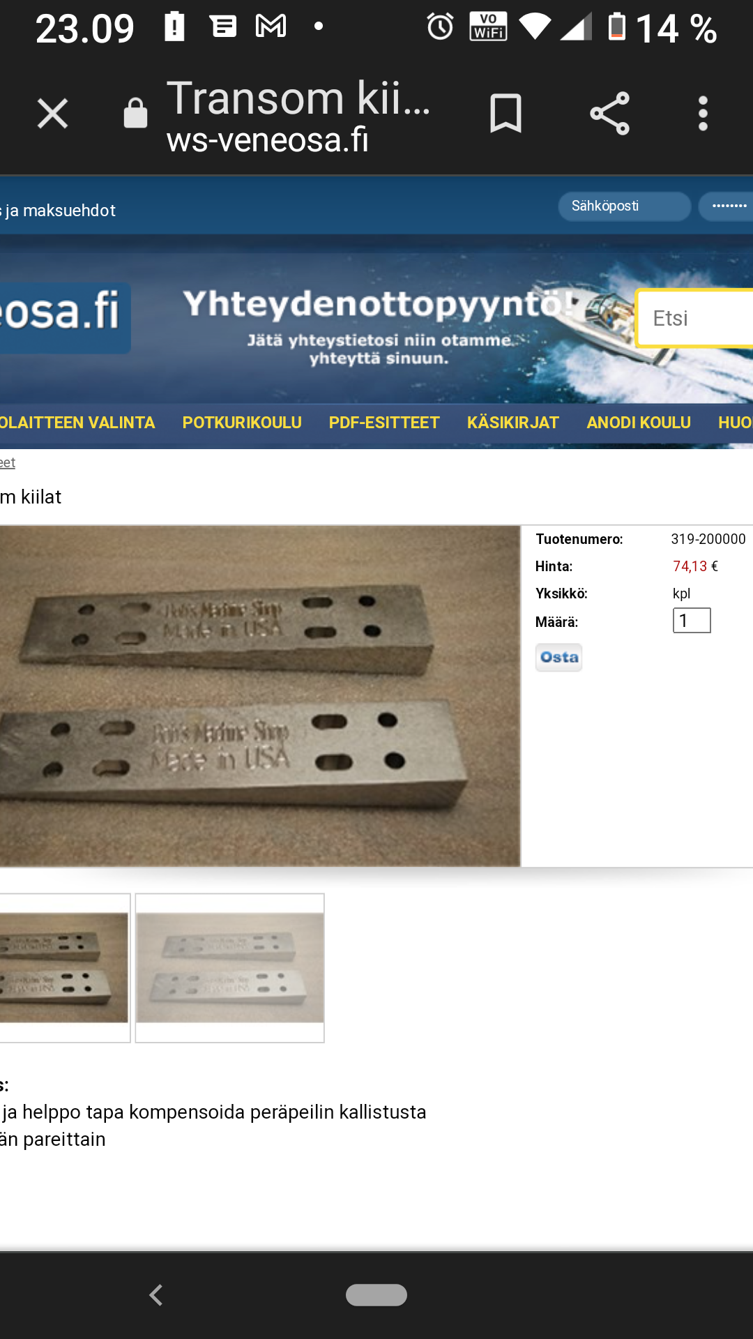 Ihan se sama transom kuin moottorivene.infossa. Valitettavasti.