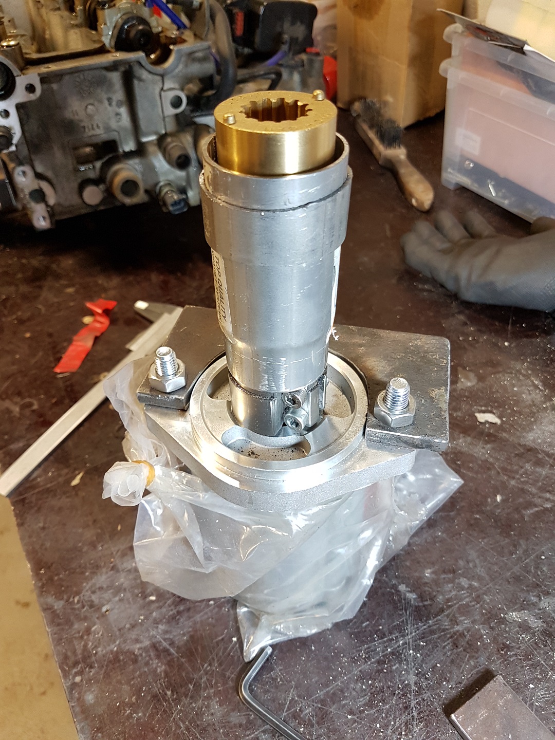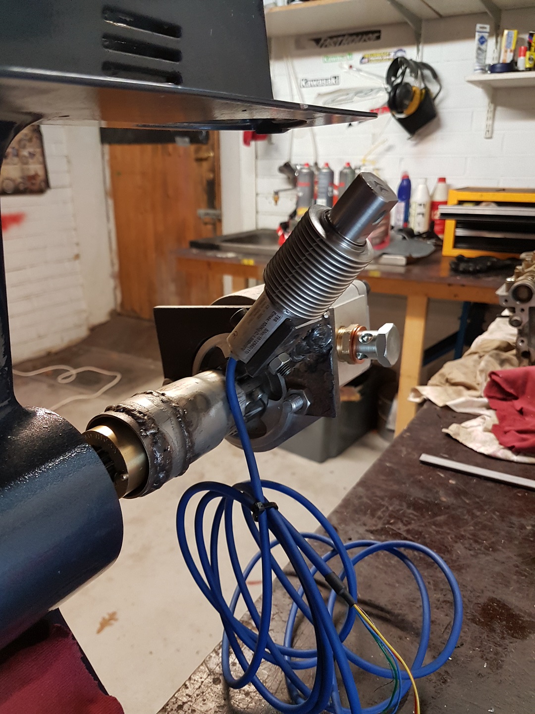Jarru tulee kiinni moottorin vaihteistoon kuten kuvassa eli ainoastaan akselin välityksellä ja anturi tulee sitten nojaamaan kavitaatiolevyyn(tähän tulee vielä nailon pala väliin). Jarrun tulee saada kääntyä vapaasti jotta kaikki vääntävä voima tulee anturin kautta. Kyllä lisään tähän jotain kumilenksuja jne että jarru pysyy akselin pituussuunnassa paikalleen mutta ne eivät vaikuta mittaukseen.