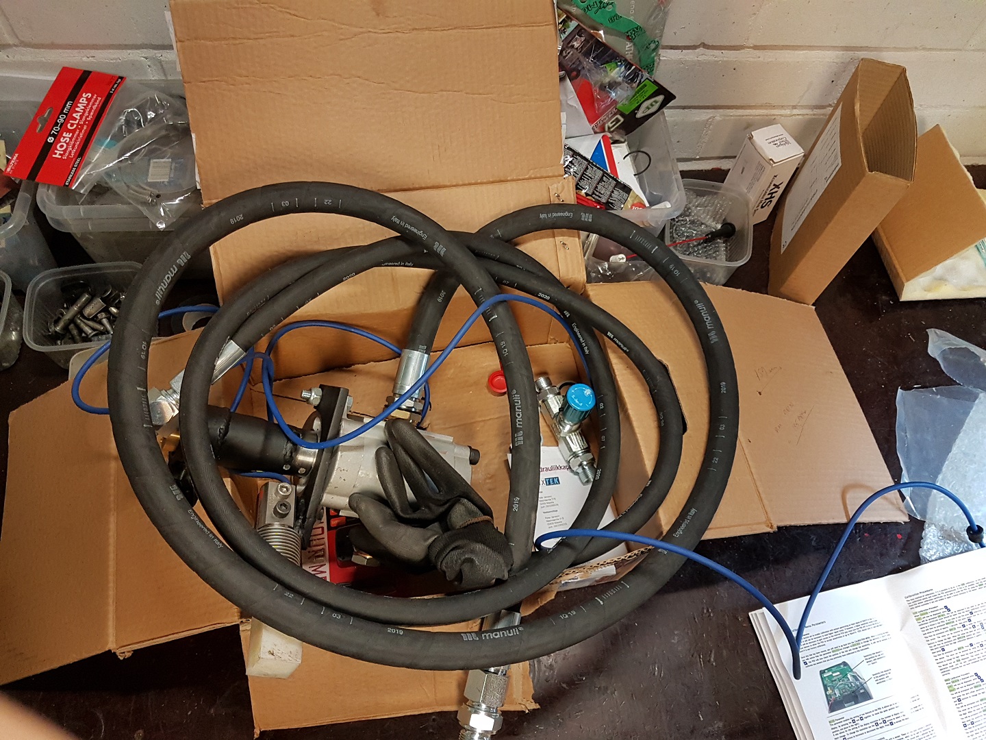 Tänään kävin hydrauliöljytkin ostamassa mutta nyt taas taitaa oikein talvi tehdä tuloaan joten laitteen ensitestit jäänee keväämmälle.