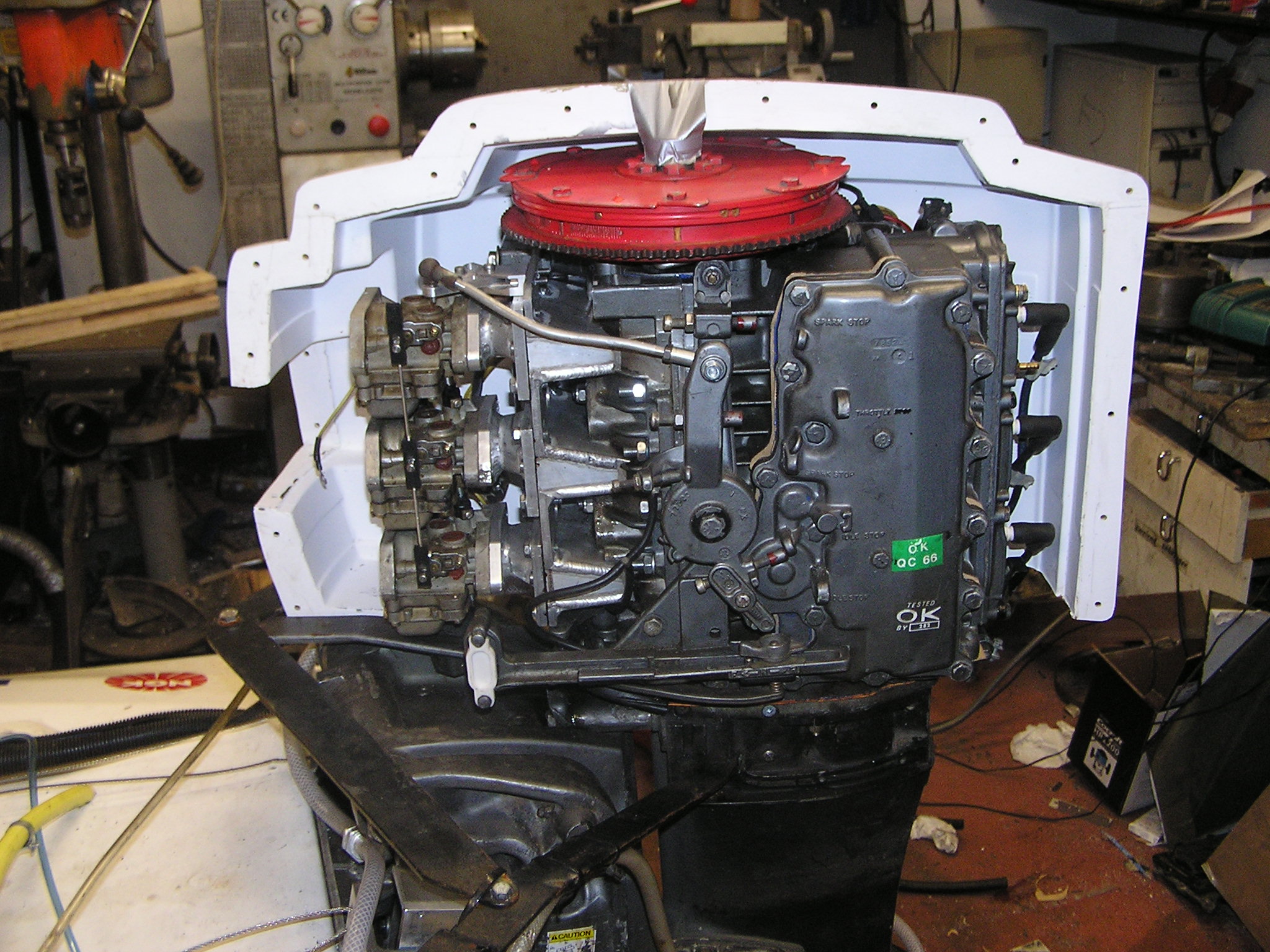 Moottorin hommaaminen lykkääntyi ihan viime hetkille kun ei ollut mittään tietoa siitä mikä olisi sopiva kone, kolmisen viikkoa ennen juhannusta päätin että moottori on Mercury 60 tai Nissan 70. Sopivasti sitten oli myynnissä 60 hp Mariner jonka kävin hakemassa pari viikkoa ennen juhannusta. Moottori oli tietysti vääränlainen eli pitkärikinen ja huonosti käyntiinlähtevä, moottorivalintaan kyllä vaikutti kaverin Mercury asiantuntemus ja silloin myynnissä olleen Nissanin epäilyttävä kunto ja merkun hinta. Jos oikein muistan niin samoihin aikoihin ostin Tomilta potkurin 11,25x20, se olikin erittäin sopivaan aikaan myynnissä.