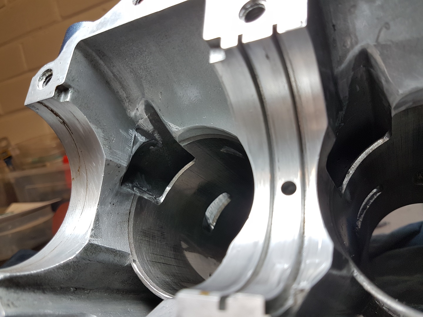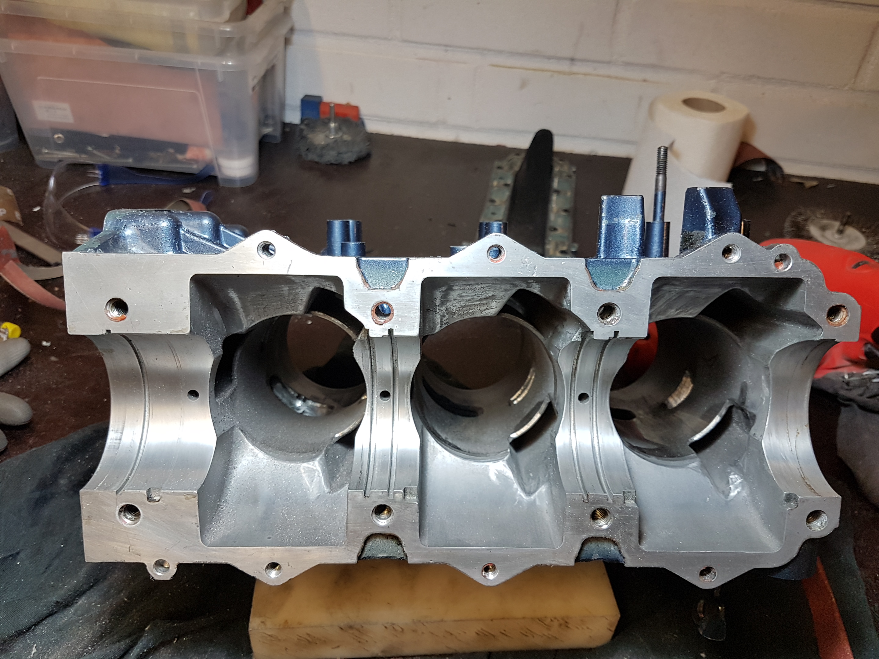 Lohkossa on nyt pyöristettu kampikammiossa kaikki terävät kulmat virtausten parantamiseksi, kanavat osittain tehty, muutamassa kuvassa näkyy boostkanavassa oleva pursejämä joka on aika roisi jätös tehtaan jäljiltä, näitä siis poistetaan mutta sitten ihan ajoituksia muutetaan paljonkin.