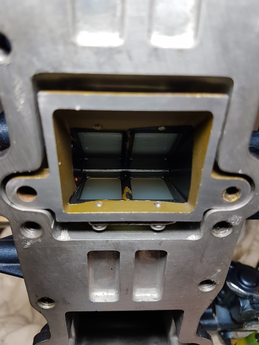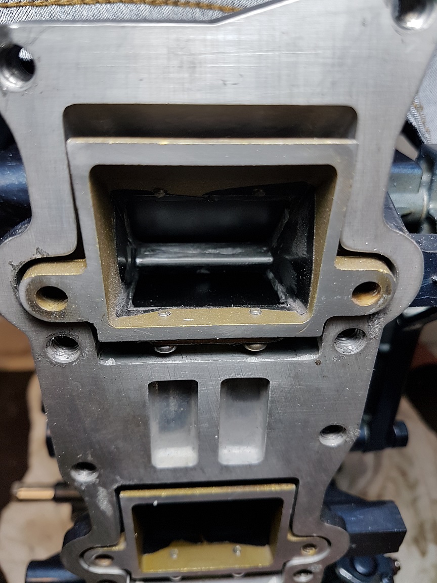Läppärungot käsitelty. Kuten tuossa aiemmin totesin niin ovat ahtaat. Muokkasin näitä niin että poistin keskituen ja avarsin kyljistä sisäpuolelta ja pyöristin vaakapalkin jotta virtaus olisi parempi. Virtauspinta-ala kasvoi n. 20%, ei paljon mutta enempää ei juuri saa. Läppien stoppareita käänsin hitusen auki(itseasiassa niin paljon kun mahtuu, ottaa lohkoon kiinni), väli on alunperin 6mm ja nyt on noin 8-9mm joten varmaan ihan ok, suhteellisesti iso muutos kuitenkin.