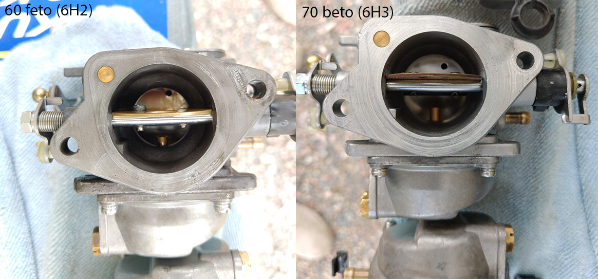 Tähän kyseiseen yksilöön olen jo vaihtanut enemmän aukeavat imuläppien rajoitinlevyt (mallia 70BETO), ja pakoputken 70BETO mallista. Kaasarit ovat 60FETO vakiot, mutta suuttimet on vaihdettu isompiin (pääsuuttimet #150 ja pilotit #75). Osien ja säätöjen kanssa tuottaa vähän tuskaa se, että huoltomanuaalit eivät tunne näin vanhaa "kuuskymppistä", ilmeisesti vastaava on ollut saatavissa jenkkilässä vasta 1991 -> eteenpäin, ja näin ollen oikeita speksejä ei ole löytynyt mistään.