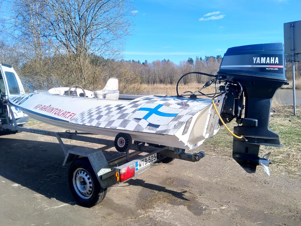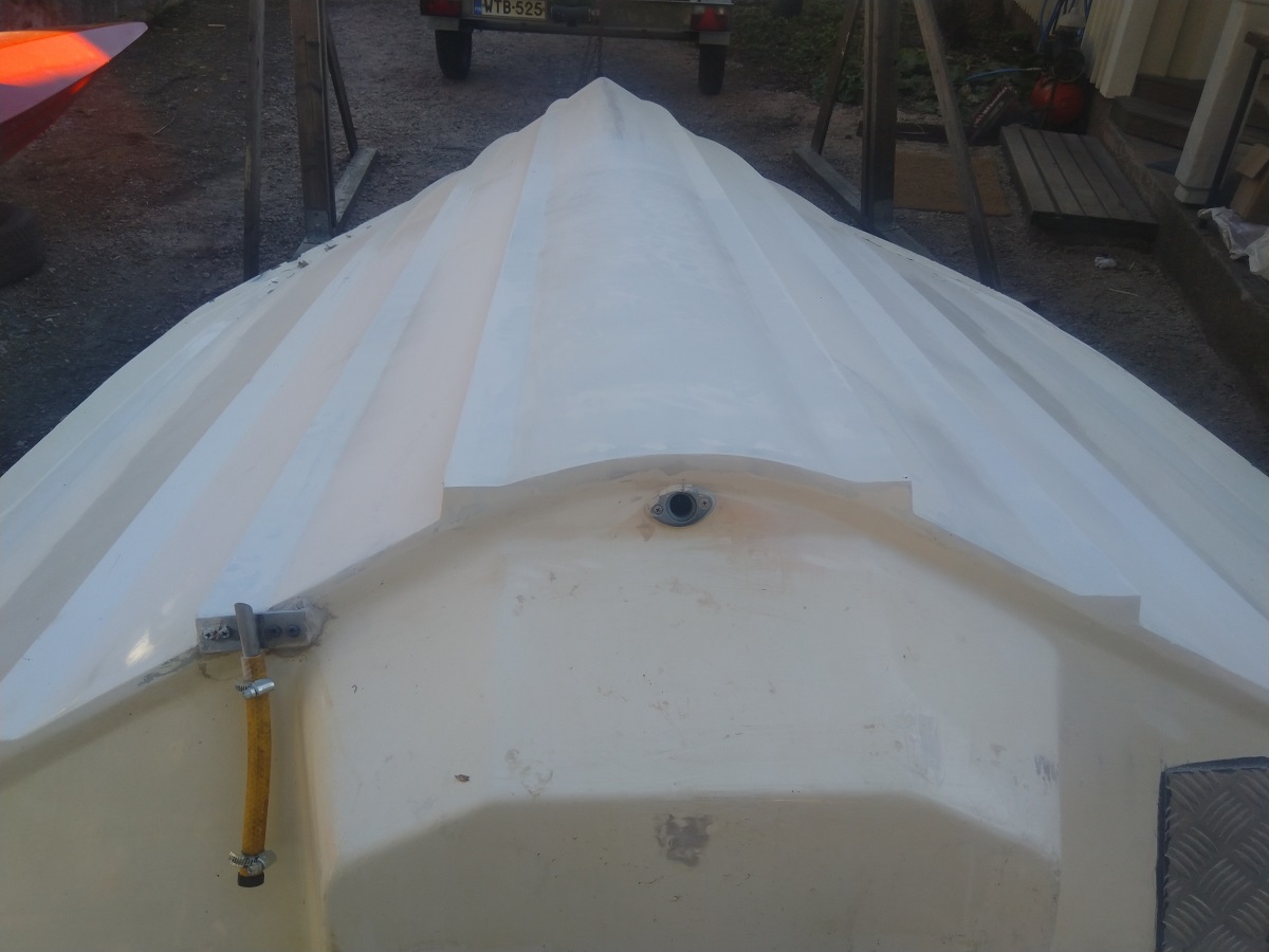 Siivet leikattu, pohja pakkeloitu, maalattu ja pesty. Ensitestit oli pikkupotkurilla noin 50 solmua.
