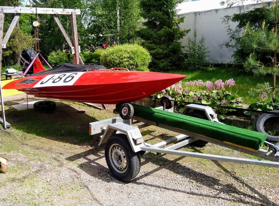 Tänään otettu vene trailerille ja loppuviikosta ensimmäiset testit. Kalkkirannan PM-kisa mennään vielä V-60 säännöillä.